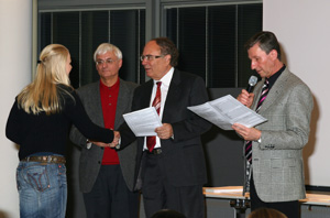 LPA – 130 Diplome verliehen Bildungslandesrat Otto Saurer, Abteilungsdirektor Peter Duregger und der Direktor der Landesberufsschule „Gutenberg“, Alfons Steiner bei der jüngsten Abschlussfeier an der Berufsschule für Handel und Grafik in Bozen. Unter den Absolventen befanden sich erstmals zwölf Mediengestalter für Digital- und Printmedien. Sie haben die dreijährige Fachschulausbildung erfolgreich abgeschlossen.