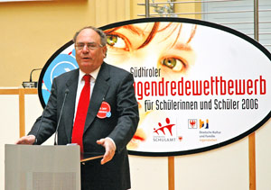 Bei der Preisverleihung betonte Landeshauptmann Luis Durnwalder, dass ein Redewettbewerb nicht nur dazu genützt werden sollte, um sich in der Sprachgewandtheit zu üben: "Der Wettbewerb bietet euch die Gelegenheit, eure Ideen klar zu formulieren und einer breiten Zuhörerschaft darzulegen. Es ist sehr wichtig, dass ihr euch mit euren Gedanken in die Gesellschaft einbringt". Damit sprach der Landeshauptmann die Grundidee des Wettbewerbes an, nämlich die Beteiligung und Mitbestimmung der Jugendlichen als Basis für eine echte Demokratie zu fördern.