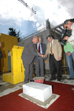 Landeshauptmann Durnwalder und Landesrat Mussner haben heute gemeinsam mit den Brixner Gemeindeverwaltern eine Urkunde mit der Baubeschreibung in einen Bauziegel gesteckt und diesen symbolisch als Grundstein auf der Baustelle mit der Mauerkelle fest gemauert.