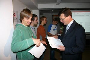 Die Oberschülerinnen und Oberschüler, die an den Landeswettbewerben, regionalen Wettbewerben und gesamtstaatlichen Wettbewerben der Mathematik-, Physik-, Informatik- und Chemieolympiade im Schuljahr 2005/06 erfolgreich teilgenommen haben, wurden heute für die erbrachten Leistungen geehrt.