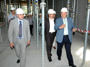 LPA - Im Bozner Stadtzentrum wird derzeit am neuen Museum für moderne und zeitgenössische Kunst "Museion“ gebaut. Die beiden insgesamt 43.600 Kubikmeter umfassenden Museions-Gebäude mit 2100 Quadratmetern Ausstellungsflächen, Bibliothek und Kunstwerkstätten werden 28,4 Millionen Euro kosten und sollen noch Ende 2007 fertig gebaut sein. Landeshauptmann Luis Durnwalder, Bautenlandesrat Florian Mussner und Kulturlandesrat Luigi Cigolla konnten sich am heutigen Mittwoch, 21. Juni, vor Ort vom zügigen Fortschreiten der Bauarbeiten überzeugen.