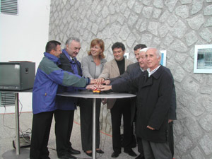 Nach der Segnung der Anlage durch den Barbianer Pfarrer, Heinrich Kamelger, haben Landesrätin Sabina Kasslatter Mur und RAS-Direktor Plattner, RAS-Präsident Hendrich sowie Bürgermeister Isidor Puntaier den Senderstandort offiziell in Betrieb genommen.