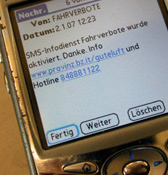 Ab dem dritten hintereinander folgenden Tag der Überschreitung der Feinstaub-Grenzwerte werden die Nutzer per Feinstaub-SMS vorgewarnt werden, dass es ab dem sechsten Tag ein Fahrverbot in der jeweiligen Stadt gibt, sofern sich die Luftwerte nicht bessern. Landesrat Michl Laimer sieht im SMS-Dienst einen entscheidenden Qualitätssprung in der Information der Bürger, weil durch „die hohe Dichte an Mobiltelefonen eine breite Information der Bevölkerung möglich ist. Besonders im Falle der Fahrverbote ist es wichtig, dass die Informationen so schnell wie möglich zum betroffenen Bürger gelangen“.