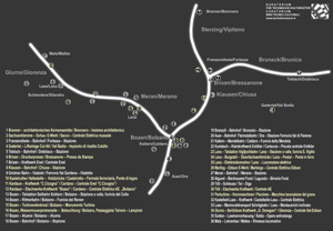 Bei den 30 technischen Kulturgütern, die künftig Radfahrer in Südtirol zu einem Halt und zu einem Eintauchen in die Technikgeschichte einladen werden, sind Bahnhöfe und Eisenbahnanlagen, Kraftwerksbauten und Seilbahnen. Als erste technische Kulturgüter sollen der Bahnhof von Klausen, der ehemalige Kastelruther Bahnhof und das E-Werk der Etschwerke am Eingang des Eggentals in Kardaun an das Radwegenetz angebunden werden, wie Projektkoordinatorin Wittfrieda Mitterer vom Kuratorium für Technische Kulturgüter und Christian Upmeier, Dozent an der Fakultät für Design der Universität Bozen bei der heutigen Vorstellung erklärten.
