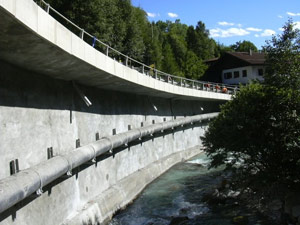 Auf einer Länge von 300 Metern war der bestehende Maueraufsatz auf der Krone der Stahlbetonstützmauer für die Straße in sehr schlechten Zustand. „Die Sicherheit für die Fahrzeuge, besonders für die Schwerfahrzeuge war nicht mehr gewährleistet“, erklärt der Projektsteurer. Die darunter liegenden Mauernteile waren durch durchsickerndes Wasser stark in Mitleidenschaft gezogen und zum Teil brüchig. Unter der Regie des Bautenressorts wurde der Maueraufsatz an den betroffenen Stellen mit Zementmörtel und faserverstärktem Mörtel saniert. Die Abdichtungen wurden erneuert und zudem wurde ein Überhang eingebaut. Auch eine Stützmauer wurde saniert. Die 184.000 Euro teure Sanierung der Mauer und der Aufsätze wurde unter der Bauleitung von Adriano Ferro in 80 Kalendertagen durchgeführt.