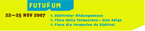 LPA - Wer nicht bis zum 22. November warten möchte, kann bereits jetzt einen Blick auf die 1. Südtiroler Bildungsmesse "Futurum 2007" werfen. Die Bildungsmesse-Internetseiten sind nun unter www.futurum.it online.