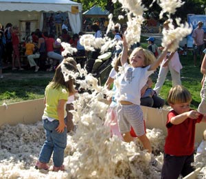 Schon früh haben die Menschen die Vorteile von Kleidung aus Wolle entdeckt. So wurde bereits in der Jungsteinzeit Schafwolle verwendet und verarbeitet. Wie, das konnten die Kinder in vier Werkstätten erleben, in denen ihnen verschiedenste Techniken der Wollverarbeitung und Textilherstellung näher gebracht wurden. Zudem konnten sich die Kinder selbst in der Kunst des Webens, Filzens, Walkens, Färbens oder Spinnens versuchen. Auch bei der Schafschur konnten die großen und kleinen Besucher live dabei sein.