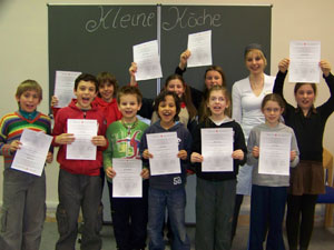 (LPA) Wer geglaubt hat, Kinder könnten höchstens aus Sand Kuchen formen, der wurde bei einem Kurs der Fachschule für Hauswirtschaft Haslach eines Besseren belehrt. Zehn Kinder zwischen acht und zwölf Jahren standen dabei an den Töpfen, um Nudel-, Fisch- und Fleischgerichte zu zaubern. Und Informationen zur gesunden Ernährung gab's obendrein.