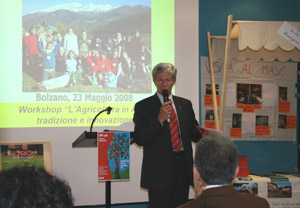 Für die Schüler bot die Tagung die Gelegenheit, die Arbeiten zu präsentieren, die aus der Beschäftigung mit dem bäuerlichen Leben entstanden waren. "Uns ist oft nicht klar genug, dass Städter - und dies sind die Italiener in unserem Lande zum überwiegenden Teil - bereits eine sehr große Distanz zur Landwirtschaft aufgebaut haben, dass sie wenig über die Bewirtschaftung unserer Flächen und die Viehhaltung wissen", so der Landesrat. Diese Distanz zu überbrücken, gelinge vor allem bei Schülern, die sich schnell für die bäuerliche Welt begeistern ließen. "Und auch am anderen Ende der Altersskala, bei den Senioren, haben wir mit dem Projekt Erfolge verbuchen können", so Berger.
