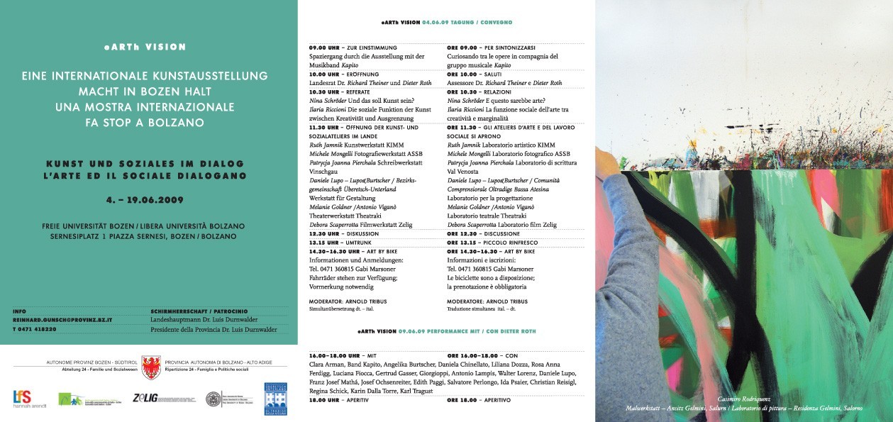 Am 9. Juni findet von 16.00 bis 18.00 Uhr eine Performance statt, an der Gesundheitslandesrat Richard Theiner und Vertreter aus Politik, Bildung, Kultur, Sozial- und Gesundheitswesen teilnehmen. Sie wird vom Kurator der "eARTh vision" Dieter Roth geleitet. Die Teilnehmer und Künstler mit und ohne Behinderung werden eine Gemeinschaftsskulptur verwirklichen, die als Symbol für alle Hürden verstanden werden soll, auf die Menschen mit Behinderung in ihrem Leben stoßen.