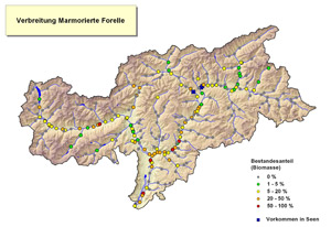 (LPA) Vor über 50 Jahren begann die Bachforelle, sich in den Südtiroler Gewässern auf Kosten einer nahen Verwandten zu vermehren; vor zehn Jahren wurde mit einer Rettungsaktion der vom Aussterben bedrohten Marmorierten Forelle begonnen: "Wenn wir an diesem Projekt weiterarbeiten," freut sich der Leiter der Landesfischzucht Peter Gasser, "wird die Marmorierte Forelle bald wieder der Leitfisch in ihrem seit Jahrtausenden angestammten Flusssystem der Etsch sein."