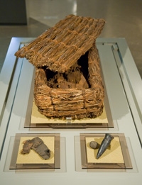 Das Kleinkind, das mit einem Leinentuch bedeckt und in einen Korbsarg gebettet ist, wurde etwa zwei bis zweieinhalb Jahre alt und trägt eine Perlenkette. Eine mögliche Todesursache ist am Skelett jedoch nicht ablesbar. Das Geschlecht ist nicht mehr nachweisbar, ein DNA-Test soll nun darüber Aufschluss geben. Damit könnte geklärt werden, ob die im Korb mit gefundenen Beigaben wie Sandalen oder ein Salbgefäß zu der Kindermumie gehören.