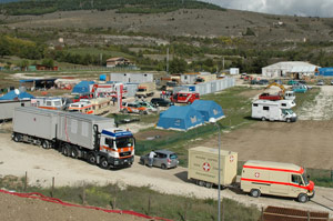 Bereits unmittelbar nach dem Erdbeben vom 6. April hatten die Südtiroler in Sant'Elia, einer Fraktion von L'Aquila, Quartier bezogen. Unter der Leitung des Landeszivilschutzes standen Freiwillige zahlreicher Vereine im Einsatz, um die Erdbebenopfer zu betreuen. So waren die freiwilligen Feuerwehrleute und die Bergretter von AVS und CAI für die gesamte Technik verantwortlich - vom Bau und der Instandhaltung der Trink- und Abwasserleitungen bis hin zur Errichtung einer Kapelle in der Zeltstadt. Das Weiße Kreuz hatte sich dagegen um die Verpflegung von Obdachlosen und Einsatzkräften zu kümmern, das Rote Kreuz um deren medizinische Versorgung, während die Notfallpsychologen und -seelsorger die Campbewohner bei der Bewältigung ihres Traumas unterstützt haben.