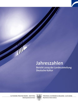 Die Broschüre "Jahreszahlen 2009" kann in der Landesabteilung Deutsche Kultur angefordert werden (Tel. 0471 413310; E-Mail: kulturabteilung@provinz.bz.it).