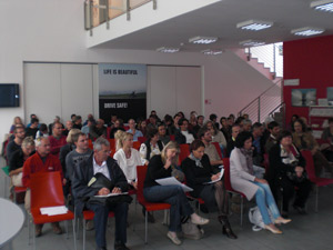 Im zweiten Teil der Veranstaltung wurde dem Publikum, das aus Lehrpersonen und Vertretern der Schule bestand, Organisatorisches zu den Vorbereitungskursen und zum Fahrtraining mitgeteilt. Über die neuen Bestimmungen im Straßengesetz informierten Paolo Morandi vom deutschen Schulamt und Giovanna Valentini vom Landesamt für Führerscheine. Das Ökoinstitut stellte seine "Wanderausstellung Mobilität" vor, während der Technische Leiter des Safety Parks, Franz Fabian, das Projekt "Fahr mit Physik" erläuterte. Die Vorführung des Films "Sicherheit im Tunnel" der drei Automobilclubs ADAC, ÖAMTC und ACI und des Films "Armi su strada" von Renato Bozzetto rundeten die Tagung ab.