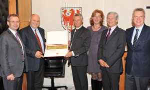 Den Großen Verdienstorden des Landes Südtirol hat Landeshauptmann Luis Durnwalder heute (3. November) dem Intendanten des Bayerischen Rundfunks (BR), Thomas Gruber, überreicht. "Gruber hat nicht nur dafür gesorgt, dass Südtirol stets als Thema im BR und in der ARD präsent war, er hat auch maßgeblich dazu beigetragen, dass wir in Südtirol das deutsche Fernsehen beziehen können", so Durnwalder.
