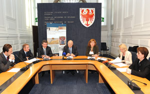 Landeshauptmann Luis Durnwalder, die Landesrätin für Bildung und Kultur, Sabina Kasslatter Mur, Ressortdirektorin Karin Dalla Torre und die Leiterin des Südtiroler Landesarchivs, Christine Roilo, stellten das zu errichtende Zentrum für Regionalgeschichte heute gemeinsam mit dem Präsidenten der Freien Universität Bozen, Konrad Bergmeister, Vize-Präsident Pietro Borgo und dem Vorsitzenden des Vereins "Geschichte und Region", Andrea Bonoldi, vor.