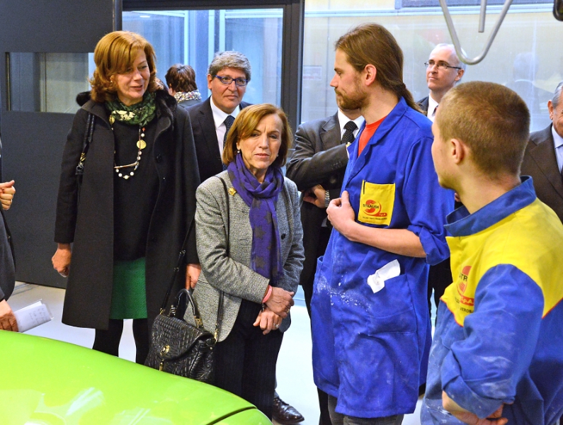 Der Besuch der Landesberufsschule für Handwerk und Industrie in der Bozner Romstraße bildete heute (1. Februar) den Auftakt des dreitägigen Südtirol-Aufenthalts von Arbeits- und Sozialministerin Elsa Fornero. Landesrätin Sabina Kasslatter Mur hat der Ministerin vor Ort das Südtiroler Modell der Lehrlingsausbildung vorgestellt; sowohl Kasslatter Mur als auch Fornero haben unterstrichen, dass die Lehre ein wirksames Mittel gegen die Jugendarbeitslosigkeit sei.