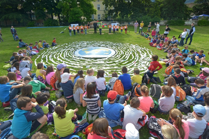 Stellvertretend für alle beteiligten Schulklassen kamen heute 110 Kinder aus Lana, Klausen, Jenesien, Laag/Neumarkt und Siebeneich zur Abschlussveranstaltung nach Bozen, wo sie in einer 200 Meter langen Karawane, die aneinander gereihten Sammelpässe haltend, vom Bahnhofspark durch das Stadtzentrum bis zur Talferwiese marschierten, um dort an der Abschlussfeier teilzunehmen. Dort wartete auf die Kinder ein Klima-Parcours mit Spielen sowie Bewegungs- und Geschicklichkeitsübungen zum Mitmachen. "In diesem Schuljahr haben wir mit unseren Projekten insgesamt 782 Klassen mit 12.183 Schülern und Schülerinnen erreicht", berichtet Heidi Thaler, Umweltbildungsverantwortliche der Landesagentur für Umwelt.