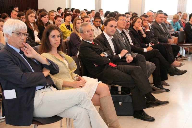 In die selbe Kerbe schlug auch Handelskammerpräsident Michl Ebner in Vertretung der 58.000 Unternehmen und tausend Genossenschaften. Schwung und geistige Spannkraft hätten die Schüler bzw. Mitarbeiter der Südtiroler Übungsfirmen bewiesen, die sich dieser anspruchsvollen Evaluation unterzogen und das begehrte Zertifikat „Qualitätsmarke Übungsfirma 2014" erhalten haben.