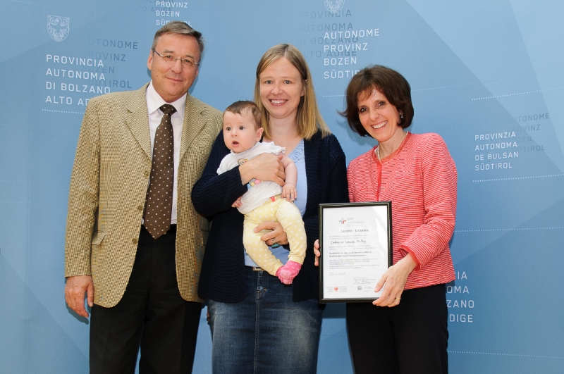 Stefan Habicher, Catherine Louise Mutzig, Brigitte Schrott, Magdalena Thuile und Mirko Udovich - das sind die fünf neuen Auditoren, die künftig Betriebe auf dem Weg zum Nachweis ihres Familienbewusstseins begleiten werden. Sie haben die entsprechende Ausbildung durchlaufen und ergänzen nun das bestehende Auditorenteam. Fünf bereits ausgebildete Auditorinnen, haben sich ihrerseits zu Re-Auditoren weitergebildet, nämlich Elisabetta Bartocci, Maria Cristina Ghedina, Christine Gostner von Stefenelli, Maria Magdalena Pircher Preims und Ulrike Trogmann.