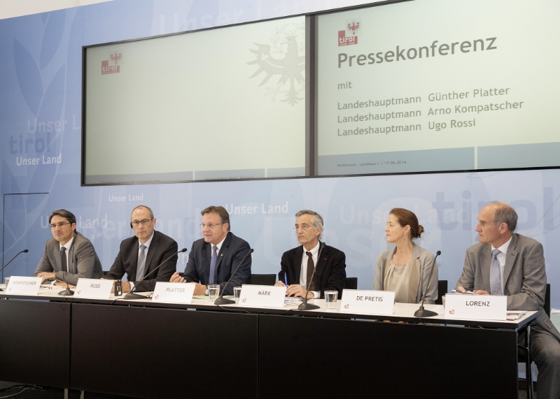 Mit einem gemeinsamen Euregio-Forschungsfonds, der mit einer Million Euro jährlich dotiert ist, soll die Forschungsleistung in Tirol, Südtirol und dem Trentino gestärkt werden. Die Förderung wird für alle Forschungseinrichtungen in der Europaregion zugänglich sein. Die erste Ausschreibung erfolgt bereits in diesem Jahr, sodass in der ersten Jahreshälfte 2015 gestartet werden kann. Darauf einigten sich heute die Landeshauptleute Platter, Kompatscher und Rossi sowie die Rektoren Tilmann Märk, Walter Lorenz und Daria de Pretis.