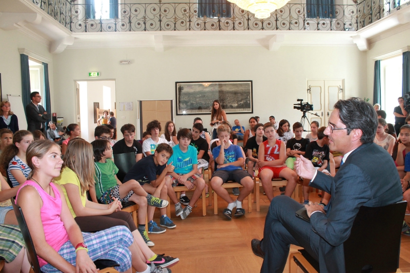 Astronaut, Fußballweltmeister, aber nie Politiker: Es waren auch die kindlichen Berufswünsche eines Arno Kompatscher, heute Landeshauptmann, die im Euregio-Summer-Camp in Neustift angesprochen wurden. 60 Kinder und Jugendliche aus allen drei Euregio-Ländern wird dort spielend Natur, Kultur und Mehrsprachigkeit vermittelt; heute (23. Juli) war der Landeshauptmann zu Gast.
