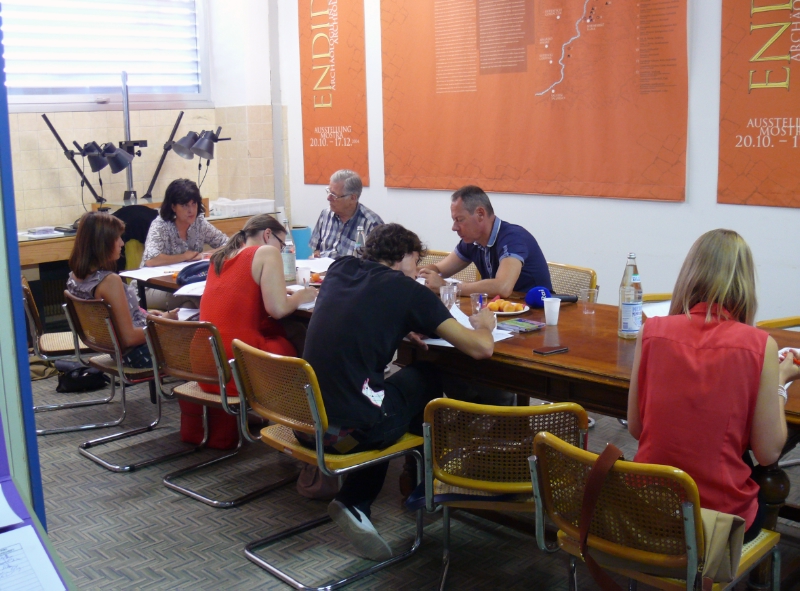 Amtsdirektorin Marzoli führte heute aus, wie die Entwicklung durch die Römerstraße beeinflusst worden sei. So seien ausgedehnte Siedlungen entstanden, in denen die Reisenden Unterkunft und Verpflegung finden sowie die Zugtiere wechseln konnten. Um dieser Bedeutung gerecht zu werden, hat das Landesamt für Bodendenkmäler heute den Vertretern der "Meilenstein-Gemeinden" ein neues Ausstellungskonzept für die Meilensteine vorgelegt. "Wir wollen damit eine einheitliche Lösung für die Ausstellung bieten und gleichzeitig der Öffentlichkeit die Geschichte der Meilensteine und der römischen Straße vermitteln", so Marzoli.