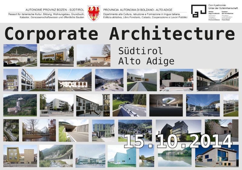 Bereits zum 13. Mal lädt die Landesabteilung Hochbau zu einem Architekturseminar. Diesmal steht das Thema "Corporate Architecture" im Mittelpunkt. Die Veranstaltung, die sich in erster Linie an Architekten, Ingenieure, Raumplaner und Techniker richtet, findet am Mittwoch, 15. Oktober, an der Uni Bozen statt und wird durch Bautenlandesrat Christian Tommasini eröffnet.