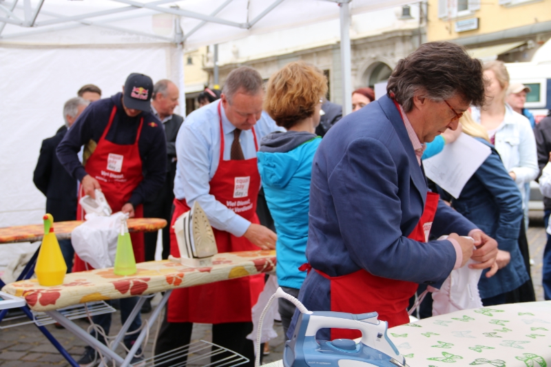 Neben den zahlreichen Informationsständen maßen sich am Musterplatz in Bozen Männer aus der Politik, der Wirtschaft und dem Sport beim ersten Ironman-Contest im Bügeln. "Mit dieser Aktion wollen wir auf den Wert der unbezahlten Hausarbeit, die auch in Südtirol in erster Linie nach der traditionellen Rollenverteilung von Frauen bewältigt wird, aufmerksam machen - mit einer Prise Humor", unterstrich die Präsidentin des Landesbeirates für Chancengleichheit Ulrike Oberhammer. Landesrätin Martha Stocker betonte anlässlich des Equal Pay Day, dass diese traditionelle Rollenverteilung auch Auswirkungen auf das Einkommen und die Rente habe, zumal sich deshalb viele Frauen für Teilzeitarbeit entscheiden. "Es scheint noch immer so, als wäre die Familienarbeit ein angeborenes Recht der Frauen, dabei geben wir 50 Prozent der Haus-, Erziehungs- und Pflegearbeit gerne ab", forderte die Landesrätin die Männer zu einer Entlastung der Frauen auf.