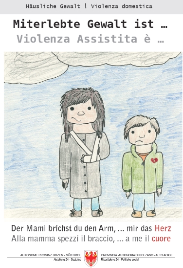 Kinder werden allzuoft Zeugen von Gewaltakten in der Familie: Laut einer ISTAT-Studie aus dem Jahr 2006 ist das in 62,4 Prozent der Fälle von häuslicher Gewalt so. In Südtirol haben sich laut ASTAT im Jahr 2014 insgesamt 578 Frauen an das Frauenhaus gewandt, 78 Prozent davon haben Kinder. In den geschützten Wohnungen für Frauen sind im vergangenen Jahr 124 Mütter mit ihren 114 Kindern aufgenommen und begleitet worden. Gewalt in der Familie und von Kindern miterlebte Gewalt sind – wie diese Zahlen zeigen – ein aktuelles Thema.
