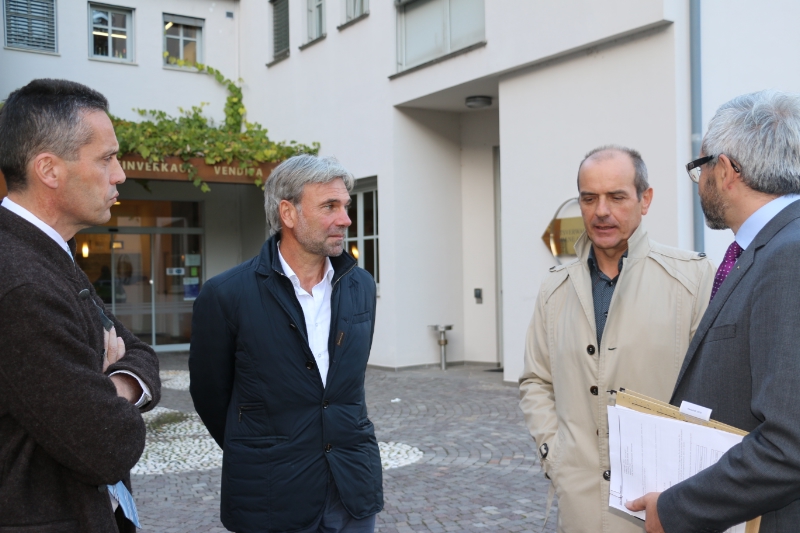 Im Austausch mit dem Tiroler Landtagsabgeordneten Hermann Kuenz und Alois Poppeller, Vorstand der Gruppe Agrar in der Tiroler Landesverwaltung, Bauernbund-Direktor Peter Raggl, dem stellvertretenden Direktor der Landwirtschaftskammer Ferdinand Grüner und dem Geschäftsführer des Landeskulturfonds Thomas Danzl, Sabine Tschöll und Albert Klammer von der Abteilung Agrarwirtschaft sowie Alexander Walser vom Agrarmarketing Tirol wurden Themen wie Ausbildung und Nachhaltigkeit, Qualität und Innovation besprochen. Und auch an das gemeinsame Käse-Projekt der Landwirtschaftlichen Landeslehranstalt Rotholz mit der Fachschule Laimburg erinnert. Das Rad, hob Agrarvorstand Poppeller hervor, sollte nicht dies- und jenseits des Brenners unabhängig voneinander erfunden werden: Man wäre froh, sich in den Aktionsplan Berglandwirtschaft einklinken zu können, um vieles gemeinsam zu entwickeln.