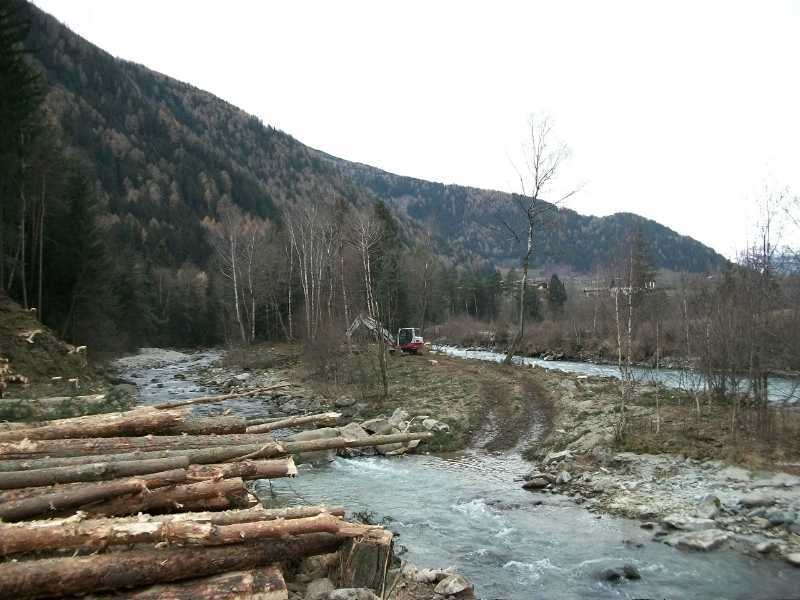 Die hierfür notwendigen Holzschlägerungsarbeiten am Eisack in Mauls sind bereits voll im Gange. Im Zuge der Arbeiten werden Nadelbäume wie etwa Fichten entfernt, das Flussbett wird, wo es möglich ist, auf öffentlichem Grund aufgeweitet.