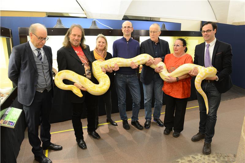 Die Schlangenausstellung wurde heute von Valentino Pagani, Leiter des Ressorts für Denkmalpflege, Museen, Vermögen und Mobilität, Karin Dalla Torre, Direktorin der Abteilung Museen und des Betriebs "Landesmuseen", Vito Zingerle, Direktor des Naturmuseums Südtirol, Ales Mlinar, Ausstellungskurator und Eigentümer der Schlangen, den beiden Reptilienexperten und Züchtern Alfred Wallner und Ursula Happ, sowie von Massimo Morpurgo des Naturmuseums eröffnet.