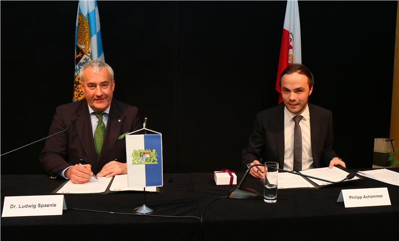 In seinen Grußworten hob auch Staatsminister Spaenle die gemeinsamen Wurzeln hervor. "Die Frage ist nicht, warum es dieses Abkommen braucht, sondern warum es dieses nicht schon seit langem gibt", meinte Spaenle, der darauf hinwies, dass mit der Tschechischen Republik ebenfalls ein vergleichbares Abkommen besteht. "Dieses Rahmenabkommen trägt auch zu einer anderen Wahrnehmung der Gemeinsamkeiten und der Geschichte, die uns verbindet, bei", erklärte der Staatsminister. Angesichts der heutigen Herausforderungen in Europa lobte er das Abkommen als "Signal für das Zusammenwirken starker Regionen im Herzen Europas".