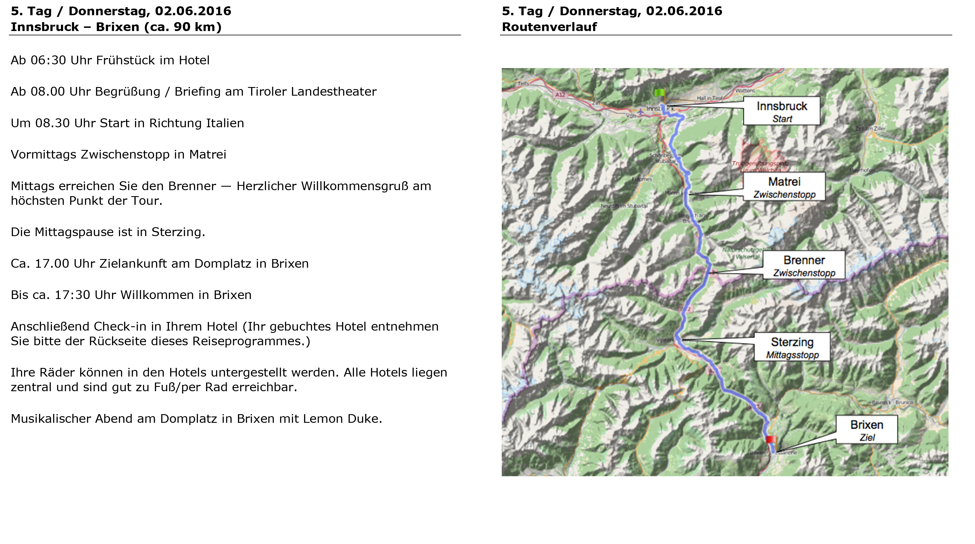 Zwischen 15.10 und 15.30 Uhr besteht am Radweg bei Gargazon (Parkplatz Schwimmbad Gargazon) die Möglichkeit zu Filmaufnahmen für Kamerateams. Zu diesem Zeitpunkt wird der Konvoi auf dem Etschradweg von Meran Richtung Bozen zurückradeln. Die Ankunft am Domplatz in Bozen ist für ca. 16.30 Uhr geplant.