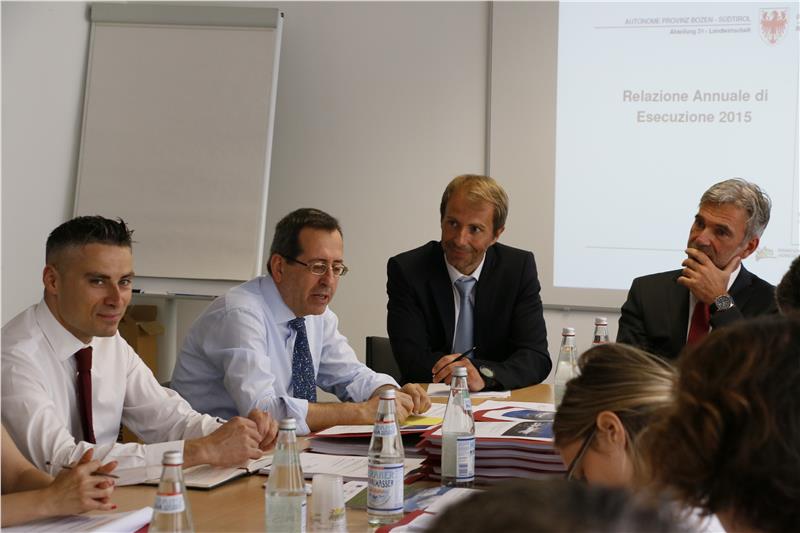Der Direktor des Landesamtes für EU-Strukturfonds in der Landwirtschaft Paolo Fox und sein Stellvertreter Andreas Kompatscher berichteten über die Periode 2007 bis 2013. Vorgestellt wurde der Jahresbericht 2015 mit definitivem Umsetzungsmaßnahmen auf Maßnahmen- und Schwerpunktebene mit den dazugehörigen Ergebnisindikatoren. Dabei wurden die Auszahlungsdaten für die einzelnen Maßnahmen analysiert. In einem zweiten Moment wurde durch einen unabhängigen Bewerter der Ex-Post-Bericht vorgestellt, eine Nachbewertung des Programms in qualitativer Hinsicht. Am Nachmittag nehmen die Mitglieder des Begleitausschusses im Leader-Gebiet Sarntal umgesetzte Projekte in Augenschein.
