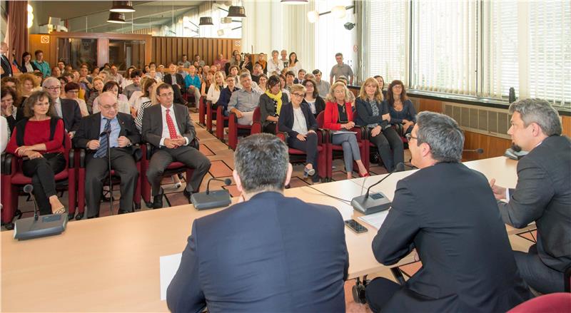 "Ich bin fest davon überzeugt", betonte Kompatscher, "dass Teamwork heutzutage einen Erfolgsfaktor darstellt, bei dem jeder von uns das eigene Potential entfalten und in den Dienst der Körperschaft stellen kann, die auf diese Weise zum Ort des gemeinsamen Fortschrittes werden kann."