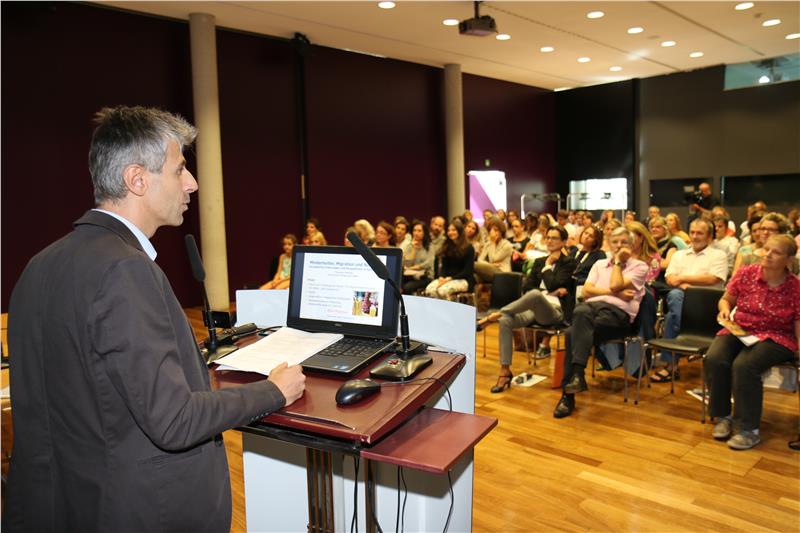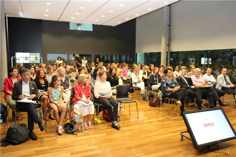 Zum Auftakt ins neue Bildungsjahr trafen sich die Sprachlehrpersonen heute (5. September) an der Eurac in Bozen zu einer gemeinsamen Eröffnungskonferenz. Neben Landesrat Christian Tommasini, den Schulamtsleitern Peter Höllrigl, Nicoletta Minnei und Roland Verra sowie Bereichsdirektor Rudolf Meraner war diesmal auch Senator Francesco Palermo anwesend, der einen Vortrag über Minderheiten, Migration und Schule hielt und unter anderem darauf hinwies, dass sich hinter dem Begriff "Migrationshintergund" eine große Vielfalt verbirgt.
