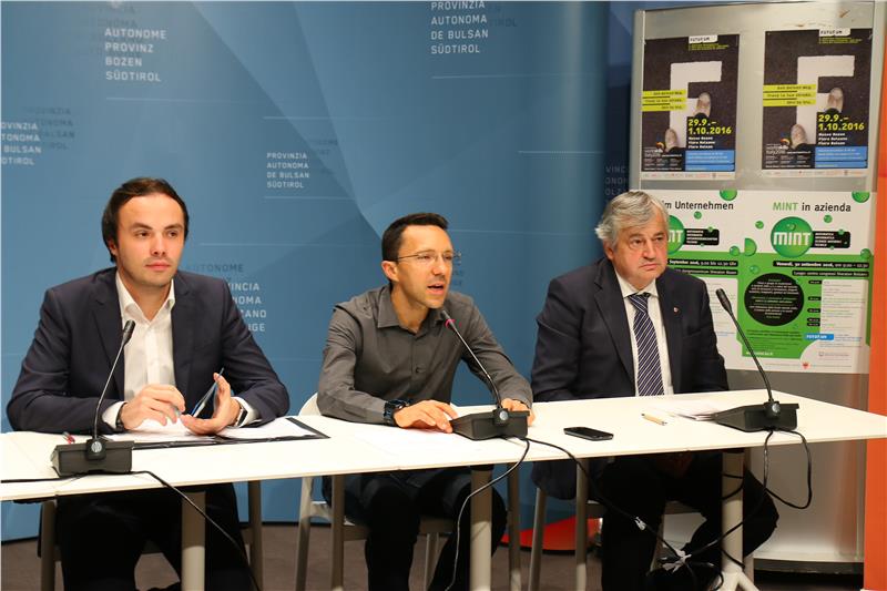 Zum sechsten Mal vermittelt dieses Jahr die Bildungsmesse Futurum umfassende Informationen über Bildungs- und Berufswege von der Oberstufe über die Hochschulbildung bis hin zur allgemeinen und beruflichen Weiterbildung. Die Landesräte Philipp Achammer, Christian Tommasini und Florian Mussner sowie der Vizedirektor des LVH, Martin Haller, und die geschäftsführende Direktorin der Abteilung Bildungsförderung, Rolanda Tschugguel, haben die alle zwei Jahre stattfindende Bildungsmesse heute (21. September) im Rahmen einer Pressekonferenz vorgestellt. Hingewiesen haben sie auch auf die parallel dazu ausgetragenen Landesmeisterschaften der Berufe "Worlskills" und die MINT-Veranstaltung.