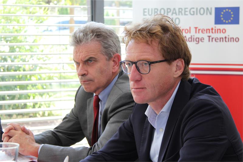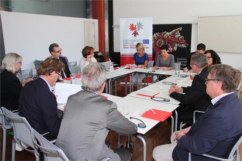Auf Initiative des Gemeinsamen Büros der Europaregion "Tirol-Südtirol-Trentino" trafen heute die für Arbeitsmarktagenden zuständigen Regierungsmitglieder der drei Euregio-Länder Tirol, Südtirol und dem Trentino – LR Johannes Tratter aus Tirol, LRin Martha Stocker aus Südtirol und LR Alessandro Olivi aus dem Trentino - in Bozen zusammen.