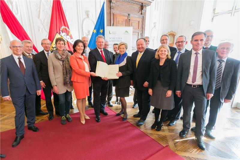 In Salzburg fand heute (4. November) die Auftaktveranstaltung statt, mit der Österreich von Deutschland den Vorsitz der Alpenkonvention übernimmt und bei der auch das 25-jährige Bestehen gefeiert wurde. Als Vorsitzender der Alpenkonferenz, dem beschließenden Organ der Alpenkonvention, stellte dabei der österreichische Bundesminister Andrä Rupprechter den Vorsitz seines Landes unter das Motto "Schützen und Nützen". "Schutz und Entwicklung des Alpenraumes", sagte Rupprechter, "müssen Hand in Hand gehen. Wir wollen die reichhaltigen Naturschätze der Alpen bewahren und gleichzeitig das Gebiet verantwortungsbewusst wirtschaftlich nützen, um den Alpenraum lebenswert zu erhalten."
