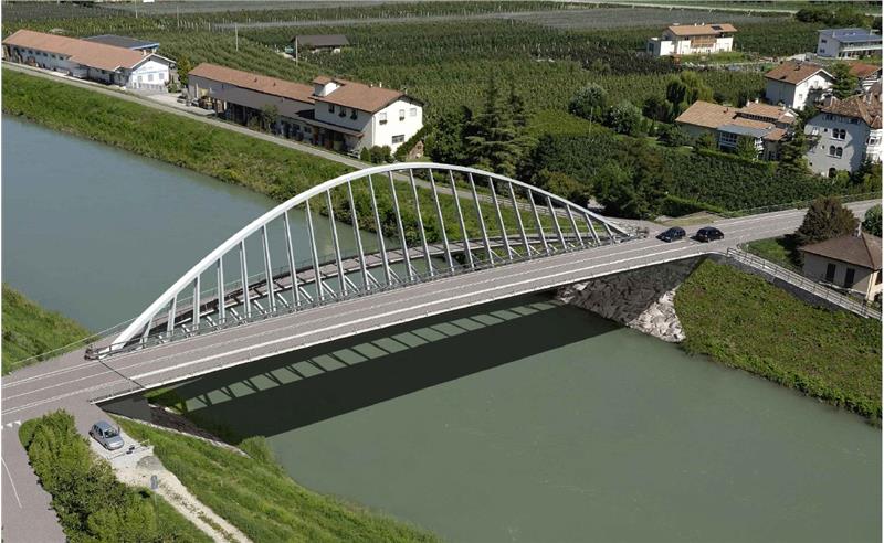 Die Landesregierung hat am 6. Dezember die Unterzeichung einer Vereinbarung mit der Brennerautobahn AG beschlossen, die für die Ausführung des Abbruchs und Neubau der zwei Brücken zuständig sein wird. „Durch die Vereinbarung wird nicht nur die Finanzierung klar geregelt, sondern auch die technischen Eigenschaften und die zukünftige Instandhaltung der Brücke werden festgelegt“, sagt Mussner. Das Land Südtirol wird sich demnach mit 7,8 Millionen Euro an den Kosten für den Neubau beteiligen. „Diese Summe beinhaltet den Bau der Etschbrücke sowie die dafür notwendigen Enteignungen, der Bau der Autobahnüberführung wird hingegen mit 6,1 Millionen Euro von der A22 finanziert, was 40 Prozent der Gesamtkosten ausmacht“, erklärt der Abteilungsdirektor Gustav Mischí. Geplant ist ein neuer einheitlicher Straßenabschnitt, mit Geh- und Radweg mit zwei Brücken die jeweils die Etsch und die Autobahn überqueren.