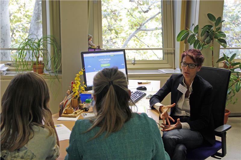 Um 9 und 11 Uhr, beziehungsweise um 14 und 16 Uhr erklären Fachleute die Struktur der Prüfung. Den ganzen Tag über können Interessierte immer wieder einer simulierten mündlichen Prüfung beiwohnen – oder sich selbst prüfen lassen. Die Kommission gibt anschließend sofort Rückmeldung, wie die Prüfung gelaufen ist. Nicht zuletzt geben Mitarbeiter der Dienststelle den Interessierten Tipps, wie letztere ihre Sprachkenntnisse mittels neuer Technologien kostenlos verbessern können – am Computer und am Smartphone. Ab 10.30 Uhr (C+D) und ab 15.30 Uhr (A+B) findet ein Treffen zum Sprachaustausch statt. Er dient jenen, die einen sogenannten Tandem-Partner für die Konversation suchen.