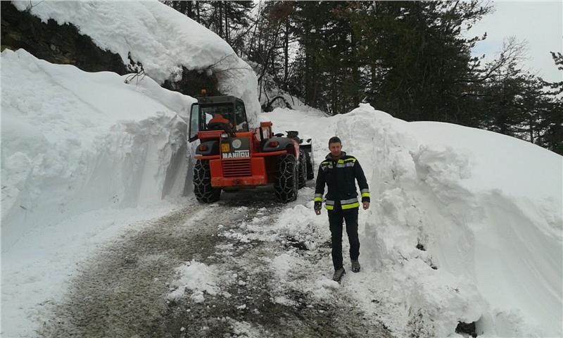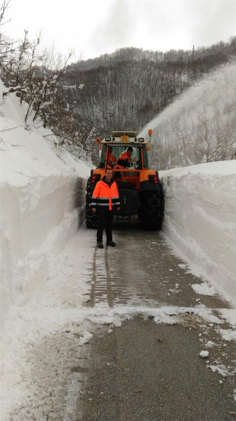 Radlader und Fräsen des Straßendienstes sind zum Freilegen von Landes-, Gemeinde- und Verbindungsstraßen in Palmiano und Roccafluvione unterwegs. In San Gregorio in Ascoli Piceno legen die Männer der Wildbachverbauung die Landesstraßen frei. Die Männer der Freiwilligen Feuerwehr sind in Montemonaco aktiv, um den Platz und die Zufahrten zu einem Heim für die Unterbringung von pflegebedürftigen Menschen und vom Erdbeben betroffenen und evakuierten Personen von den Schneemassen zu befreien.