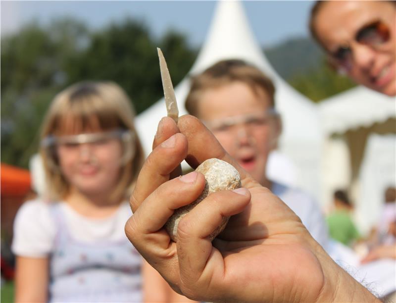 Wer hat als Kind nicht probiert, einem Feuerstein durch Aneinanderschlagen sein Geheimnis zu entlocken? Mehr als ein bisschen Schwefelgeruch kam dabei meist nicht heraus. Kinder und Erwachsene, die nicht locker lassen und mehr darüber wissen möchten, kommen im Familiennachmittag 1+1 zum Thema „Silex – Hightech der Steinzeit“ auf ihre Kosten. Der Archäologe Nico Aldegani erklärt anschaulich, warum Silex (Feuerstein) seit der Steinzeit für die Menschen so wertvoll war, wie er geschlagen wird und welche genialen Werkzeuge sich daraus anfertigen lassen. Anschließend arbeiten die Zweierteams, bestehend aus Kind und Erwachsenem, gemeinsam mit dem Werkstoff und werden in die Grundtechniken der Feuersteinbearbeitung eingeweiht.
