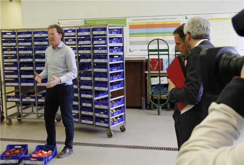 Zwei der heute präsentierten Forschungsprojekte betrafen das Versuchszentrums Laimburg. „LagReIn“ nennt sich das Projekt, das Qualitätsmerkmale, das metabolische Profil und die wichtigsten Inhaltsstoffe der autochthonen Rebsorte Lagrein identifiziert hat. „Apfel-fit“ nannte sich eine Untersuchung von 100 Apfelsorten nach ihren gesundheitsrelevanten Nährwerten. In der Präsentation sowohl in einem Labor der Laimburg als auch im Apfellager wurde dargestellt, wie die Erkenntnisse der Studie die aktuelle und zukünftige Auswahl der Apfelanlagen in der Landwirtschaft beeinflussen können. Dabei zählen sowohl die Erfolgschancen einer Sorte beim Verbraucher als auch ihre Resistenz gegen Schädlinge. Neuere, resistente Sorten benötigen meist ein Bruchteil der Spritzmittel, um mit intakter Qualität auf die Verkaufstheke zu gelangen - und sie halten sich länger frisch.
