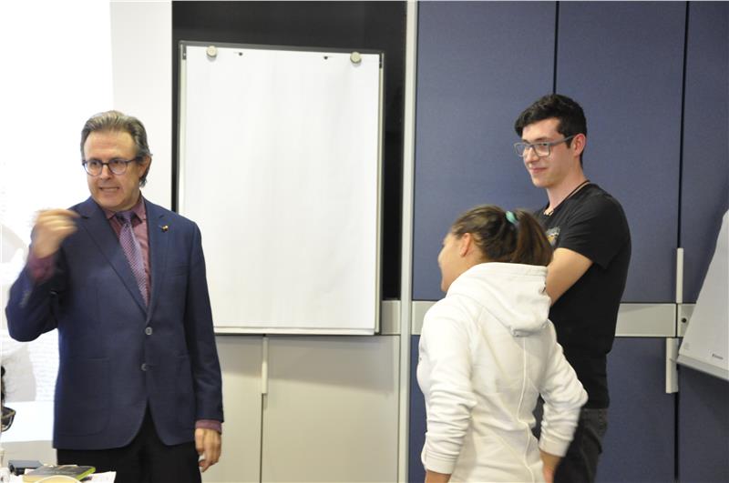 Anhand von Wortspielen, Klängen, Bildern und Metaphern zeigte Marco Forni den Jugendlichen, wie bedeutend der richtige Gebrauch der Wörter in den verschiedenen Sprachen ist, um eigene Gedanken und Gefühle angemessen mitzuteilen. Als einzigartigen Reichtum bezeichnete Forni die Mehrsprachigkeit in Südtirol. Die Möglichkeit, mehrere Sprachen in einer Provinz zu sprechen und in mehreren Sprachen verstanden zu werden, sei ein Privileg, um das die Südtiroler beneidet würden und worauf sie durchaus stolz sein sollten.