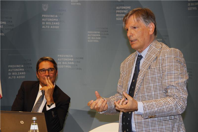 Im Jahr 2007 schließlich beschließt die Landesregierung, auf dem Areal Ex-Alumix einen Technologiepark zu bauen. „Auch in diesem langfristigen Projekt hat der Abteilungsdirektor einen aktiven Part eingenommen, mit dem Ergebnis, dass heute viele Unternehmen schon ihre Teilnahme daran zugesagt haben“, sagte Kompatscher. Nicht zu vergessen sei auch die Förderung des Landes zugunsten der Garantiegenossenschaften und deren Zusammenschluss.