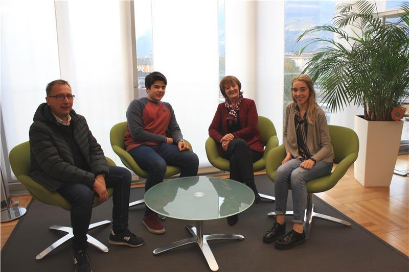 Gestern Nachmittag (2. November) waren Schüler des Vereins "Juvenes" zu Gast bei Gesundheits- und Soziallandesrätin Martha Stocker. Seit dem vergangenen Jahr führen die Schüler immer wieder Initiativen durch, mit deren Erlös sie die Tätigkeit des Kinder-Palliativ-Care-Teams rund um Grazia Molinaro - und damit unheilbar kranke Kinder und deren Familien - unterstüzen. So veranstalteten sie im vergangenen Jahr zum Beispiel den Lauf "Run for a smile" und verkauften sie unter dem Namen "Api in città" Honig von Bienen, die sie selbst auf der Terrasse des Rainerums halten. Insgesamt rund 80 Jugendliche beteiligten sich bisher an den Aktionen, mit den Einnahmen konnten einige Messgeräte und einen Laptop für das Kinder-Palliativ-Team angekauft werden.